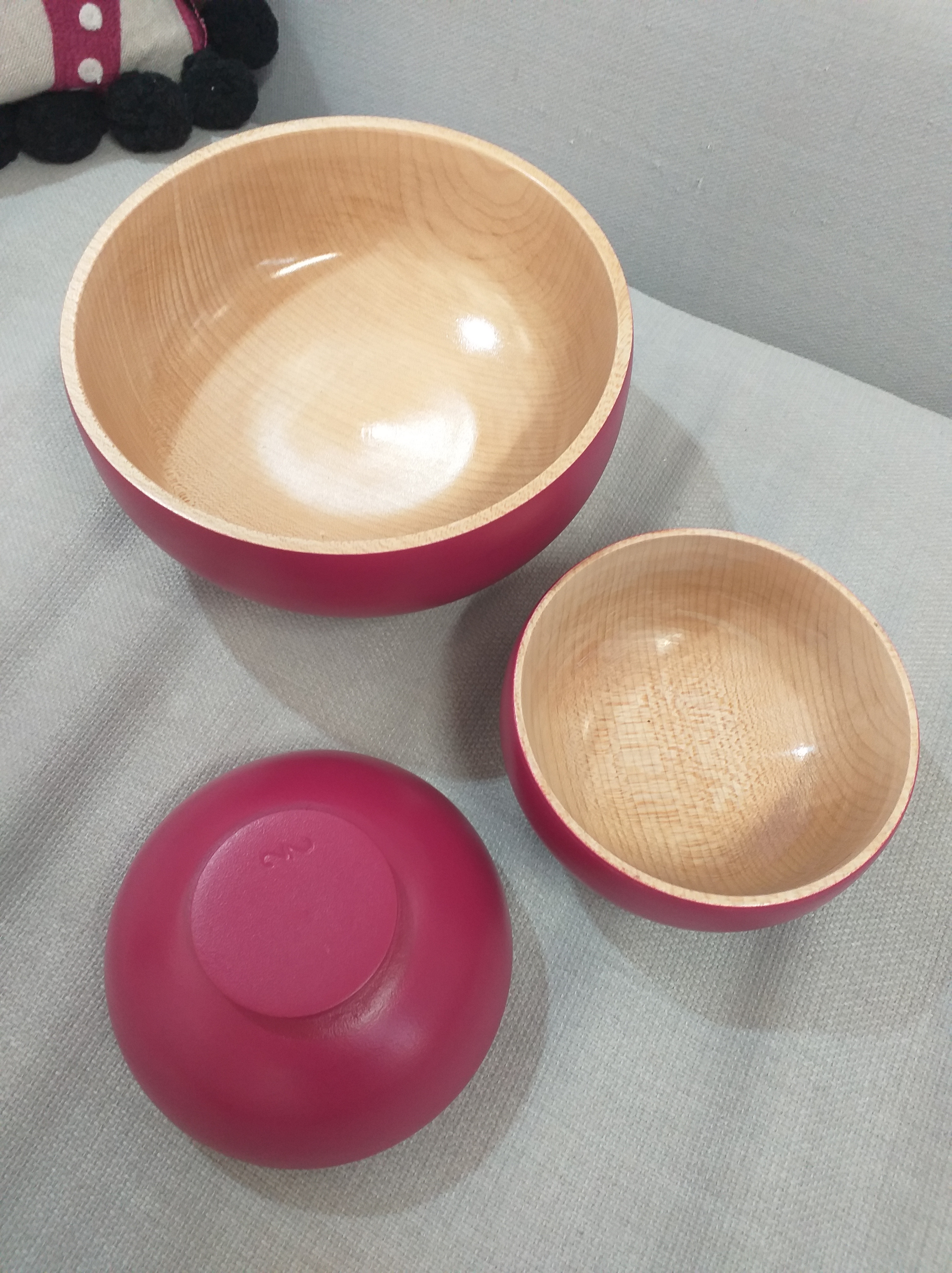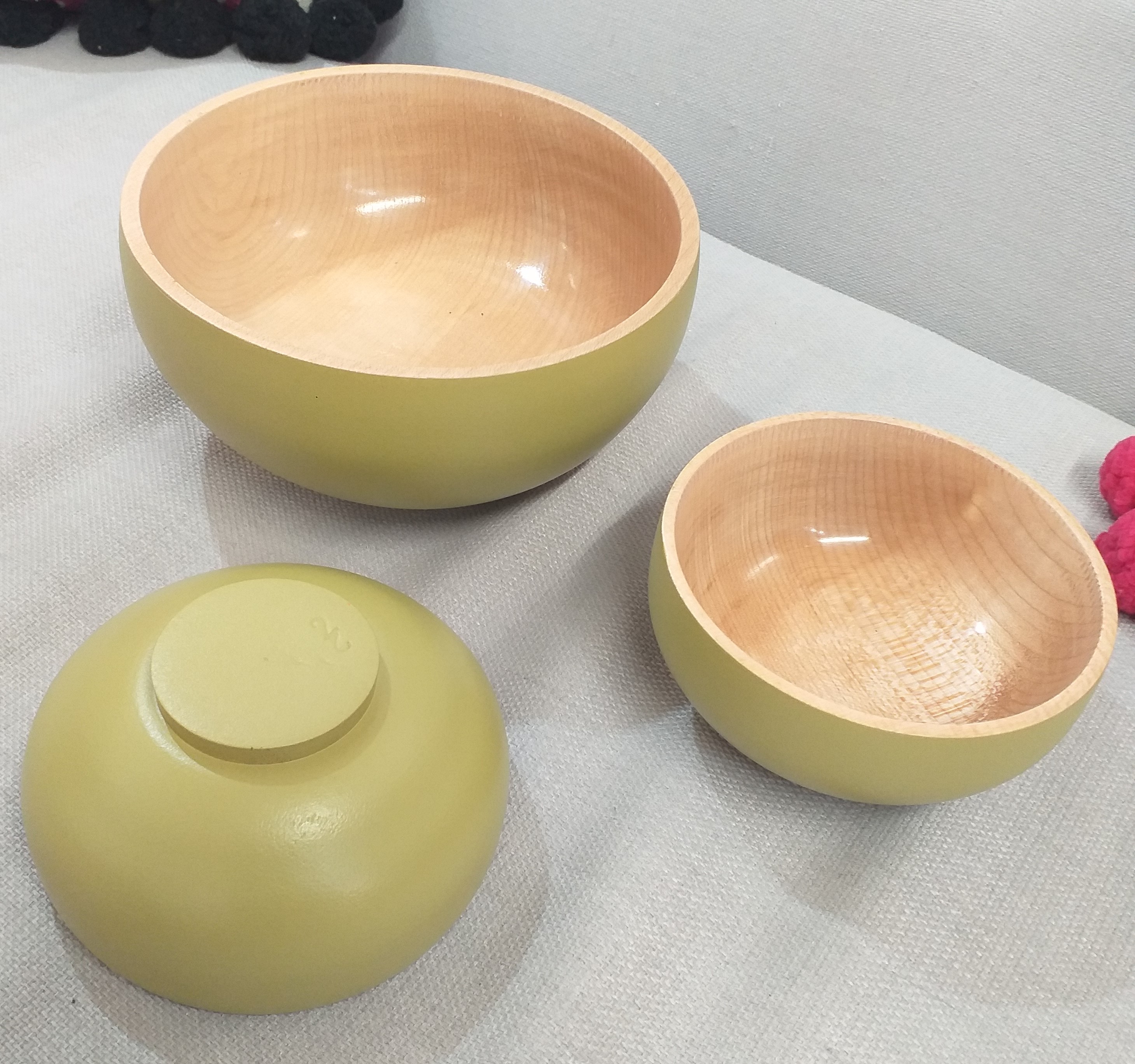 The Gallery is very pleased to have received a selection of hand created pieces by artist Kevin Buckley. Sycamore Bowl sets (set of three – 1x large & 2x medium) in three wonderful colours – Pink, Green and Grey.