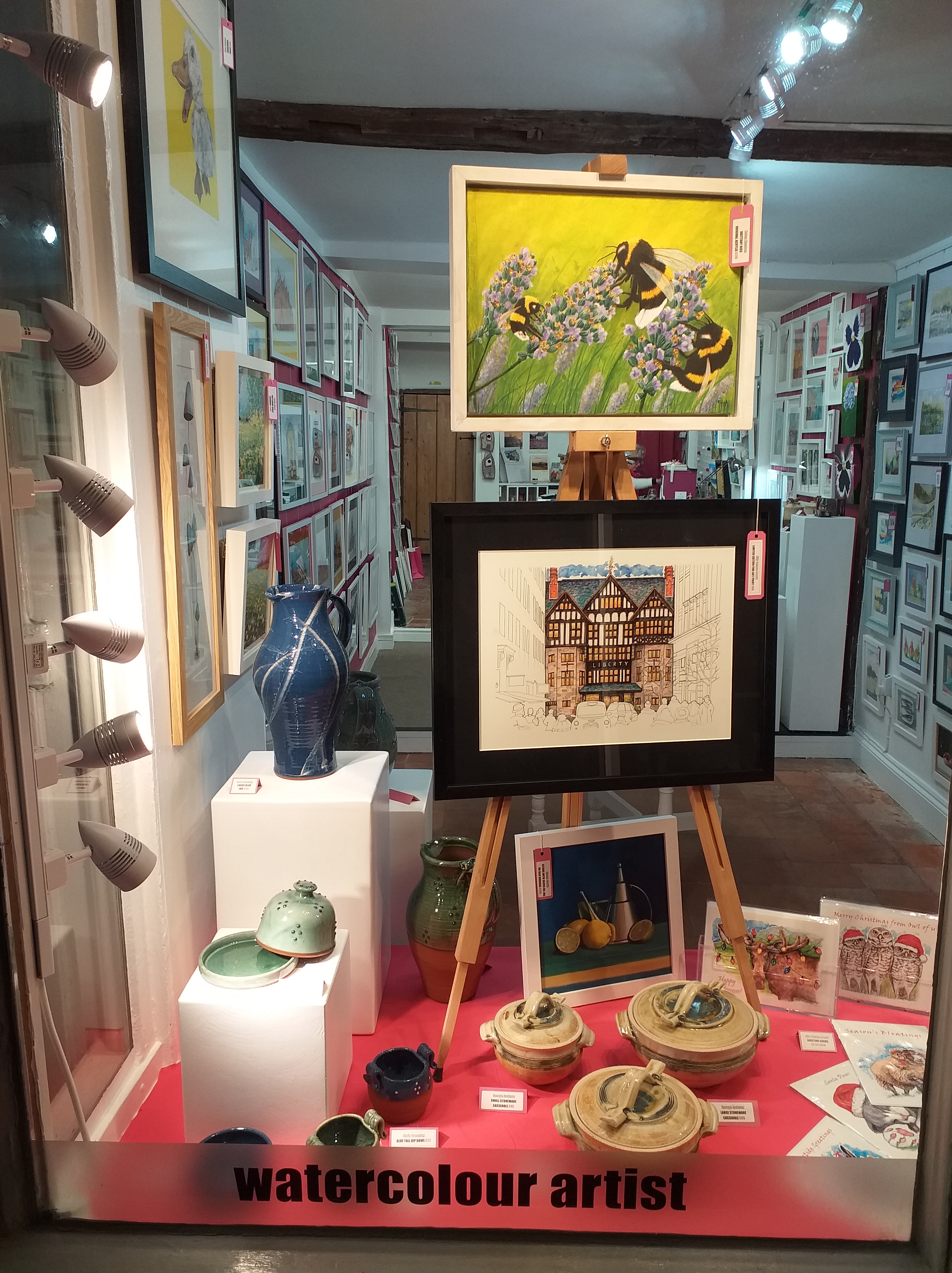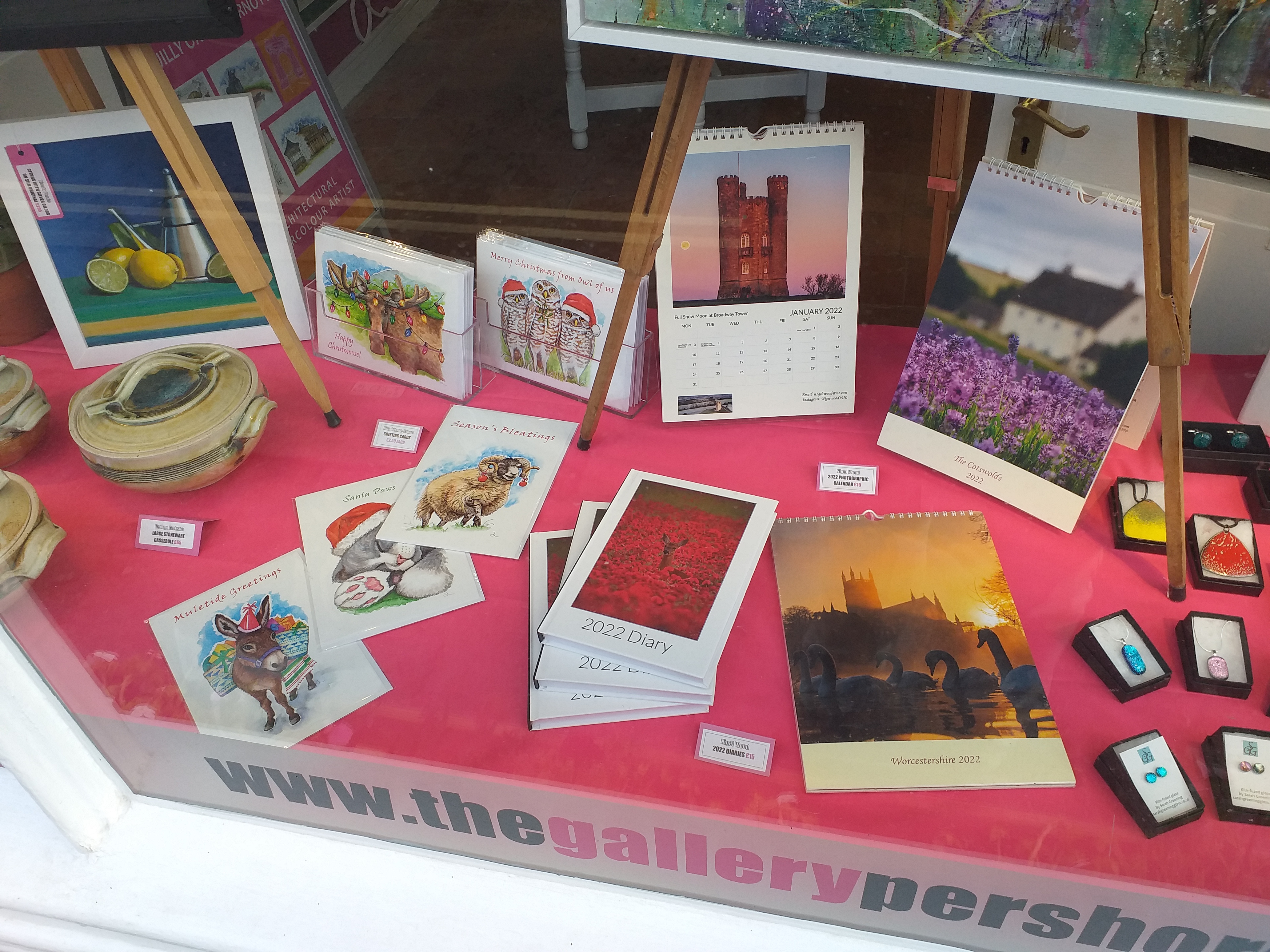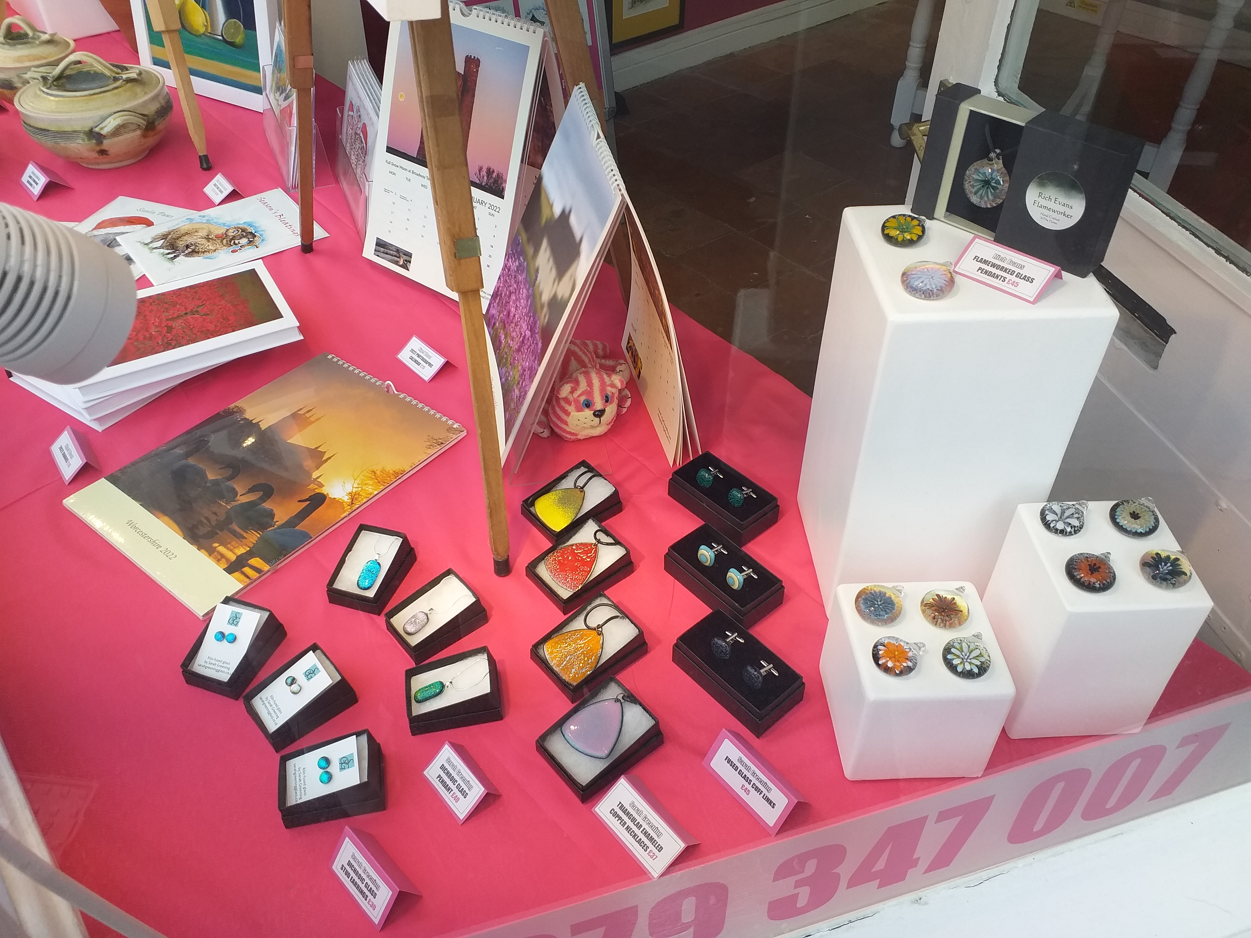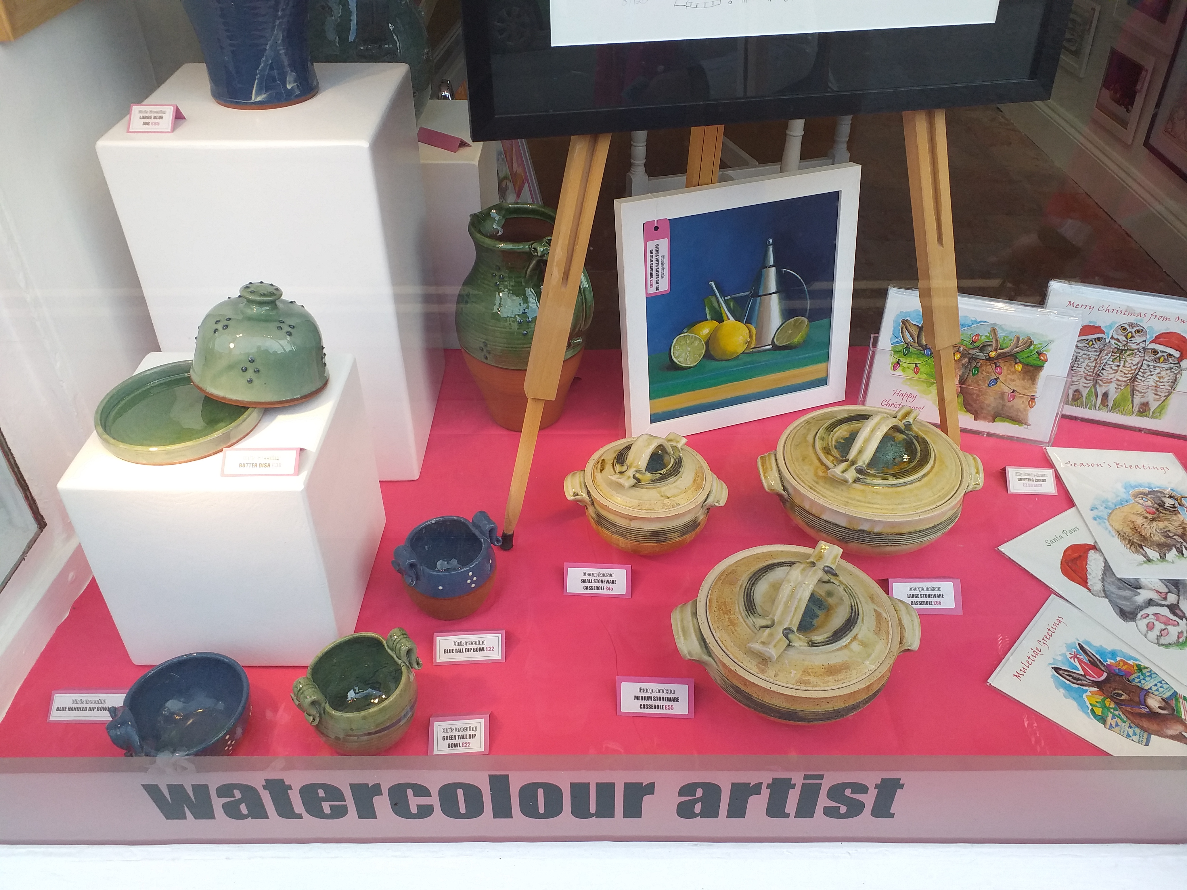 The first window change of November saw the introduction of our Christmas cards, fused glass and flameworked jewellery, calendars, some beautiful new original paintings and lots of pottery.