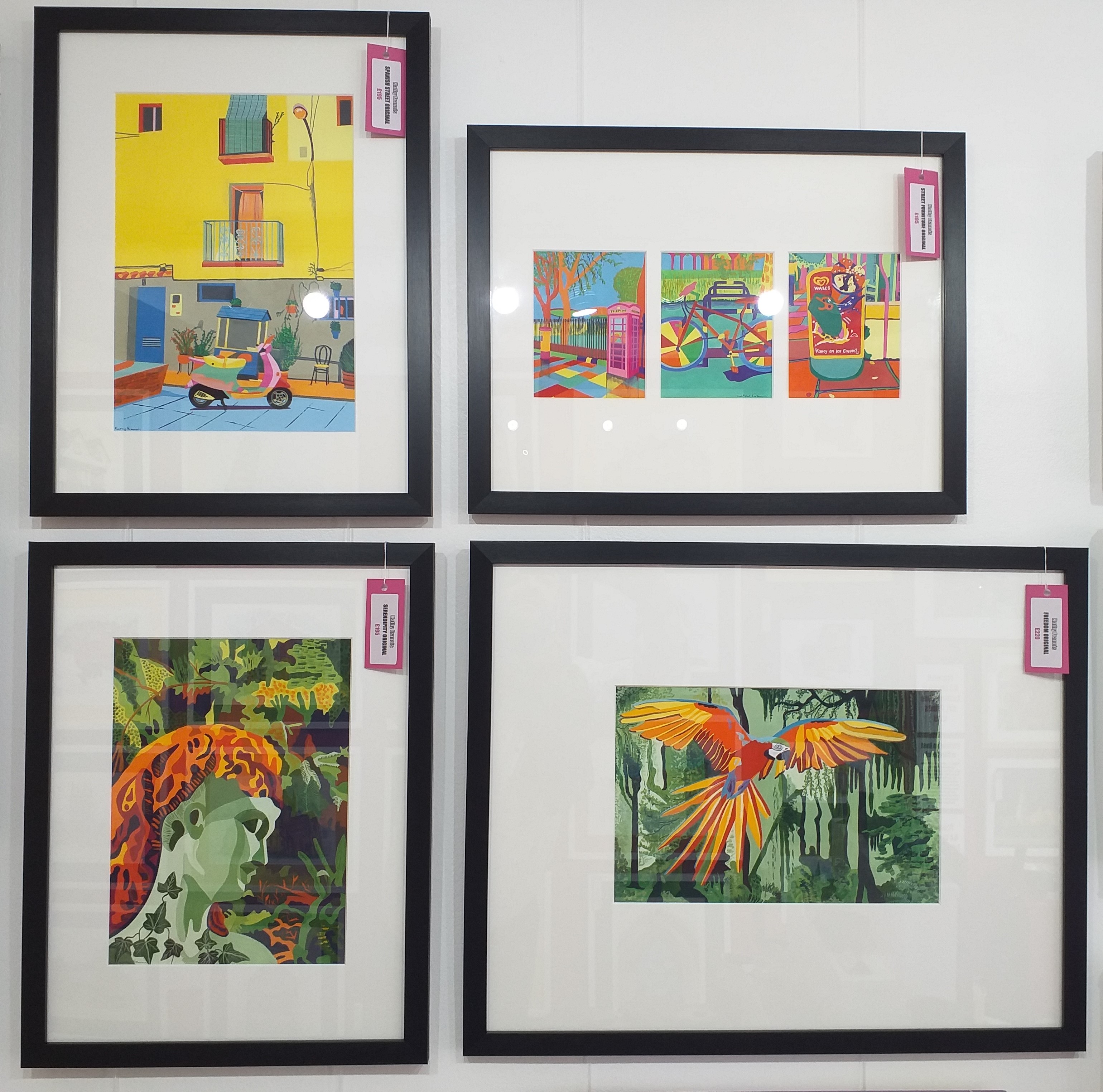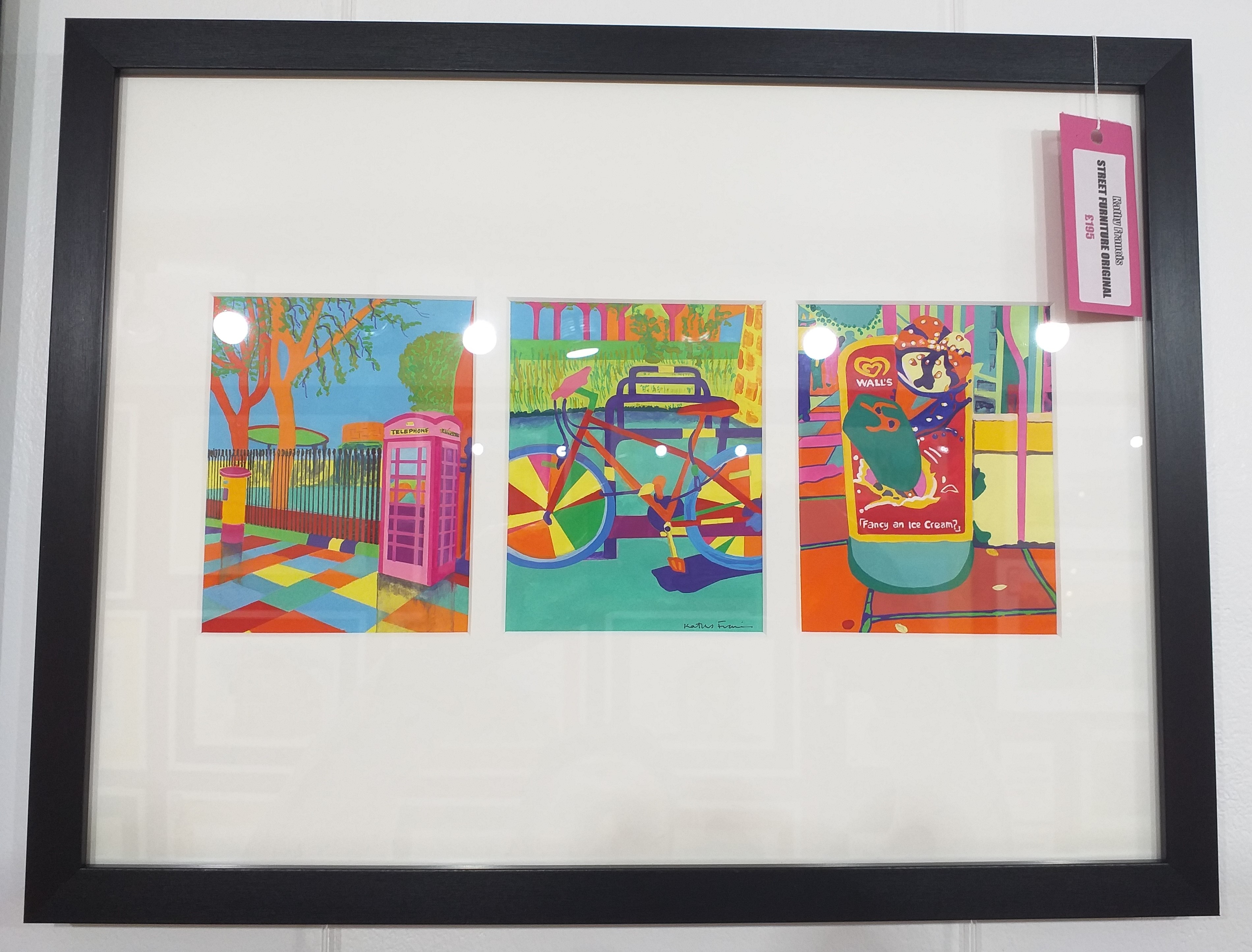 Artist Kathy Francis gives us the opportunity to present her work of amazing gouache on watercolour paper originals, including Freedom, Stonehenge, Serendipity, Spanish Street, Candy Flock and the triptych of Street Furniture. We love the colours and vibrancy of her work?