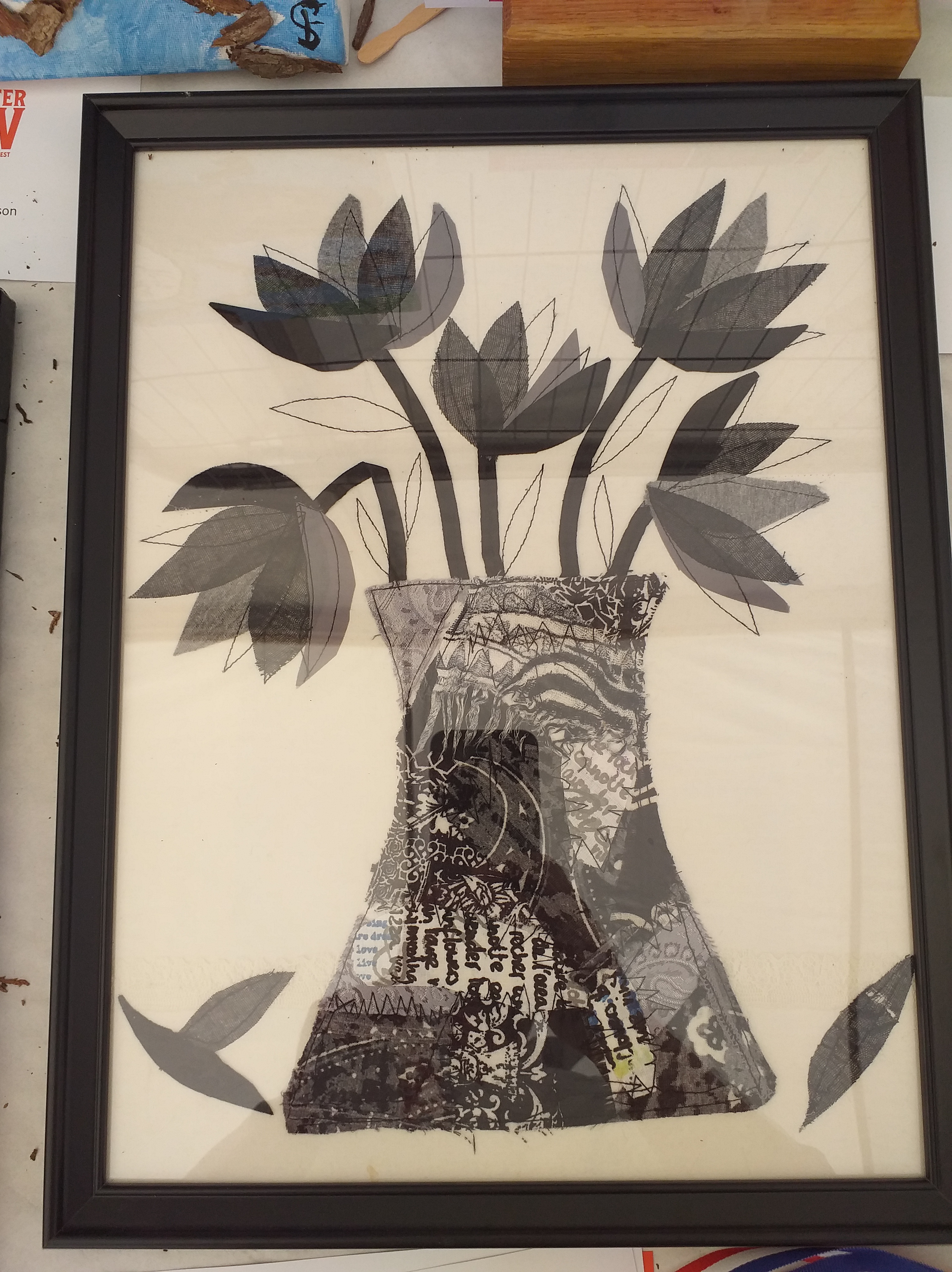 Judges Comments: Like your use of fabric and stitch to create a ‘painting’ well done. If you try using paint or inks as well as fabric and stitching the effect is even better, Do try it, Very Creative.