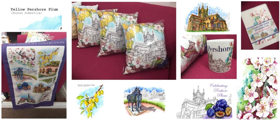 New for this year is The Pershore Collection Tea Towel (£16 each), Pershore Mug (£12.50 each) and Pershore Cushion (£30 each) all available from the Plum Festival Merchandise Stalls and The Gallery only.