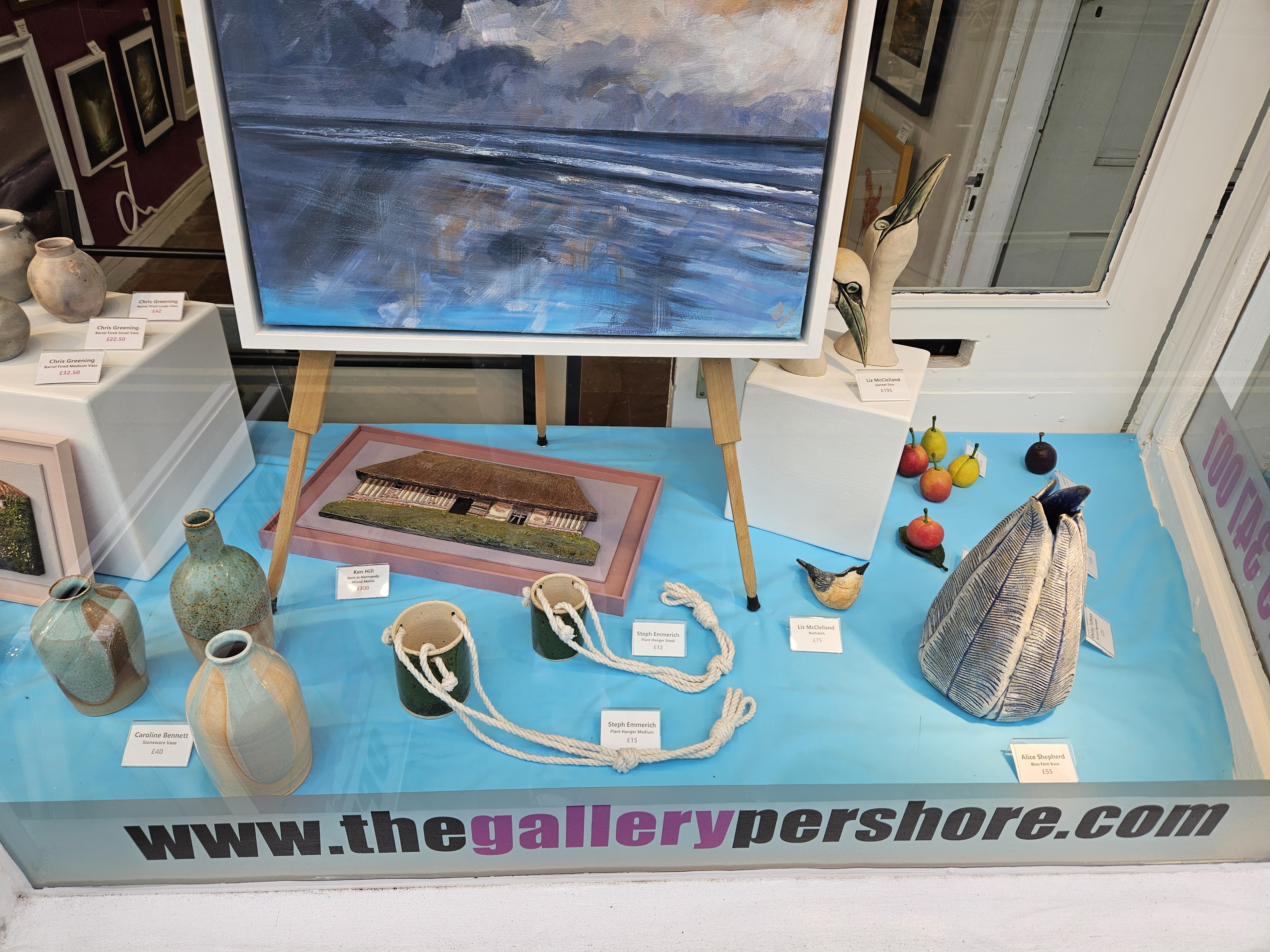 The Gallery changes and rotates artwork all the time as we sell items, bring on new artists and present new creations. A constant change to the window and showroom gives the opportunity to show all our artwork (2D and 3D) in different settings, given visitors and regulars a new perspective of the works.