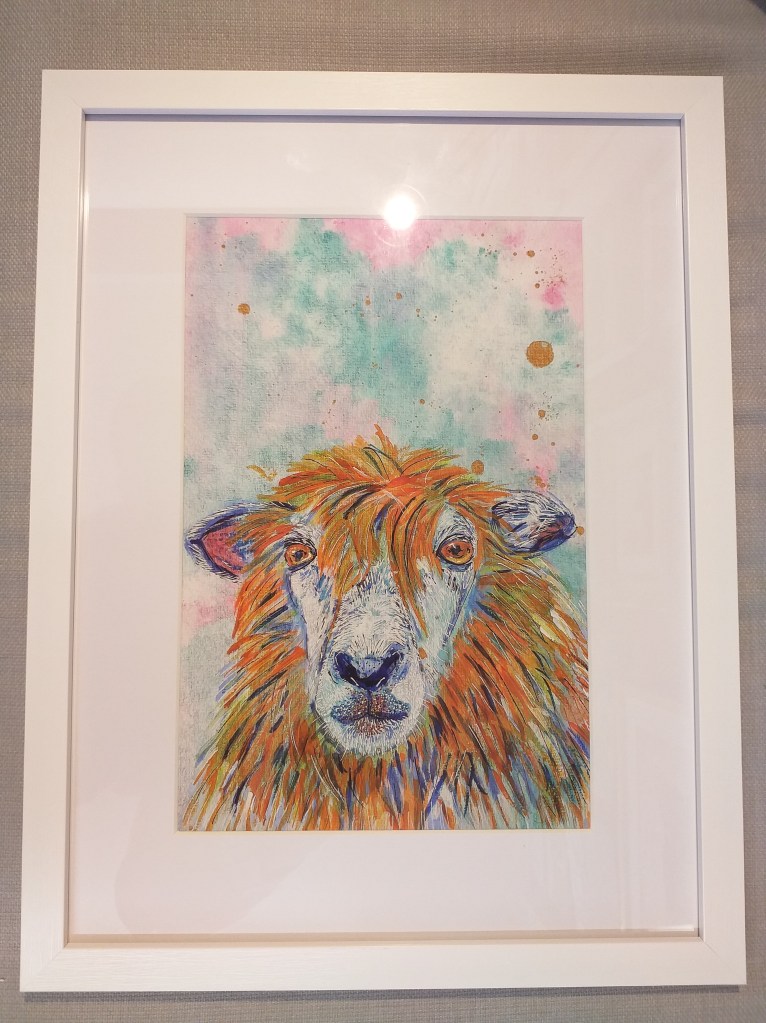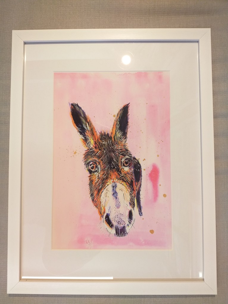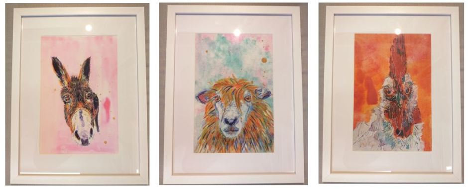Framed 16×12 Prints of Pandora the Fox, Moe the Donkey, Freddie the Cockerel, David the Sheep, Cosmo the Badger and Flo & Mable the Hares by artist Bic Beaumont now available at The Gallery this week.