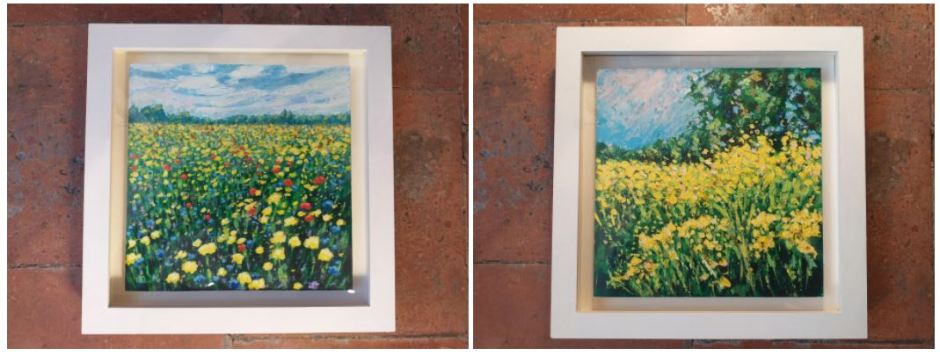 Two new arrivals by artist Colin Clark – Wild Flower Meadow (Confetti Fields) and Wetlands Walk (Marsh Marigolds at Tewkesbury), both framed original works.