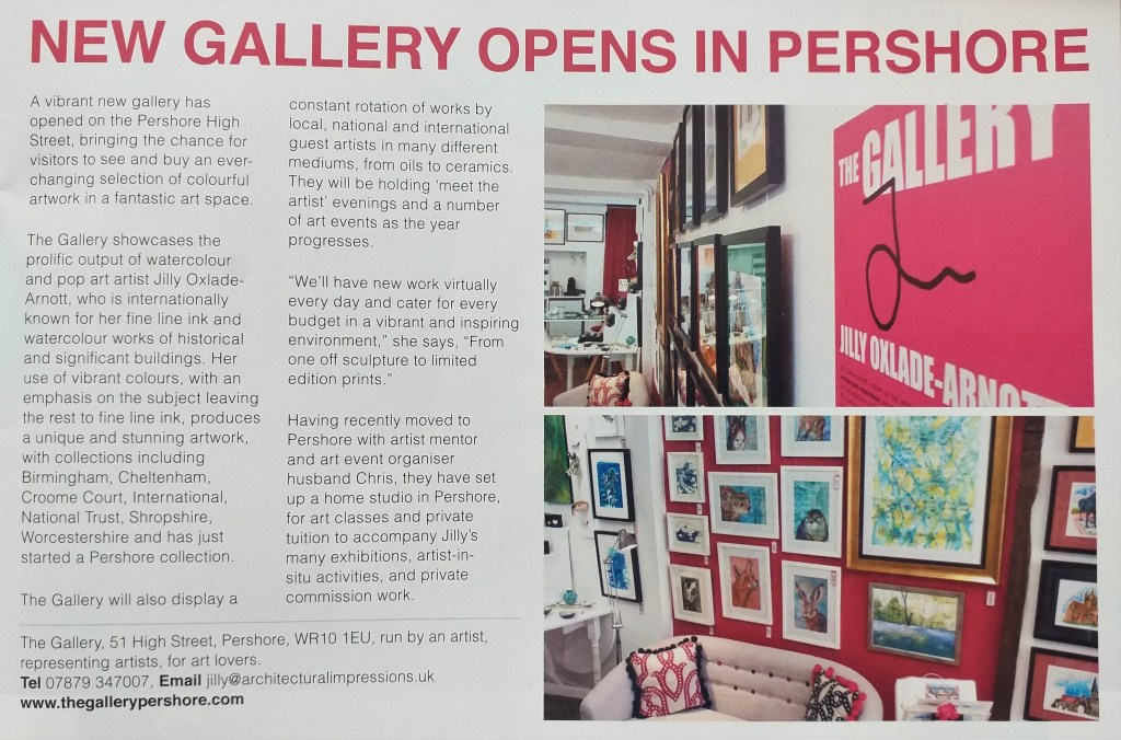 Now an internationally renowned artist, Jilly Oxlade-Arnott’s latest venture is The Gallery. A bold, new art gallery in Pershore showcasing her extensive collections and works from guest artists.