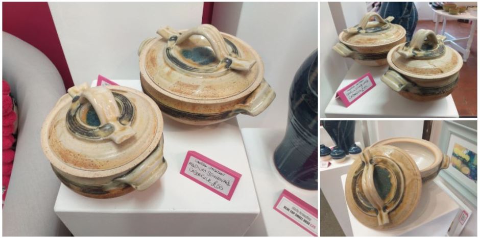 New stoneware casserole creations by artist George Jackson arrived this morning. Beautiful! We currently have small, medium and large but they are not expected to last long in The Gallery.
